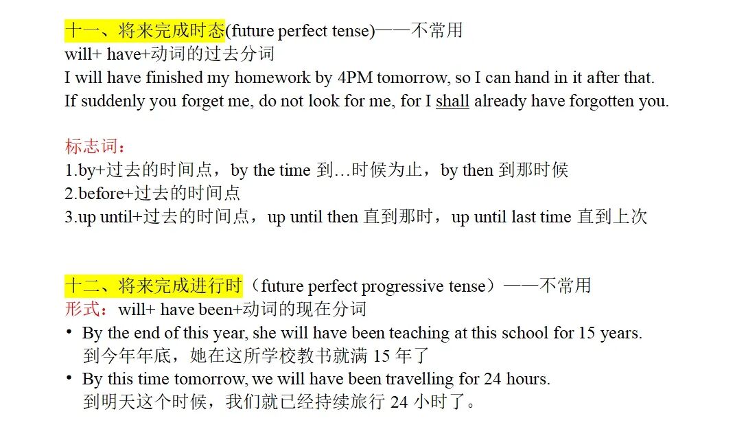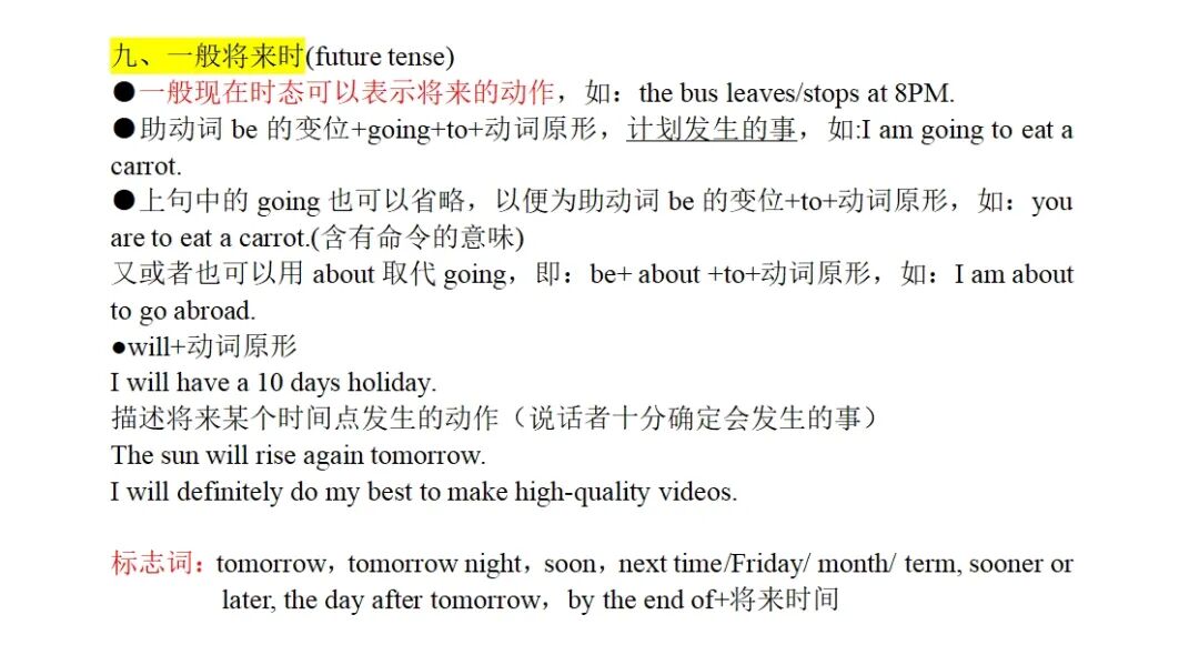 ●过去将来:对于过去的某一个时间点而言的将来(不常见,一般只出现在从句中)