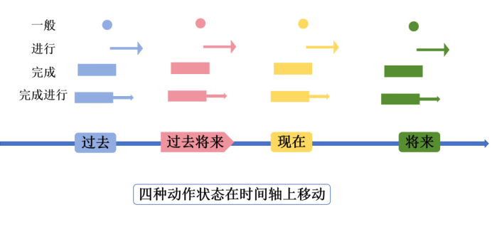 下面在坐标轴上展示这几个时态具体的区分,首先要明确几个概念: