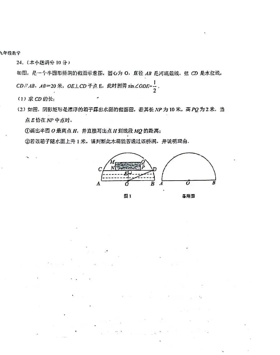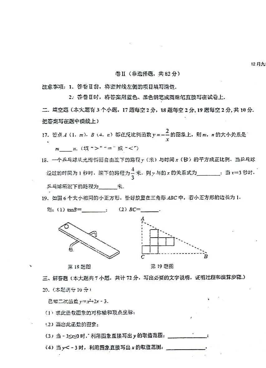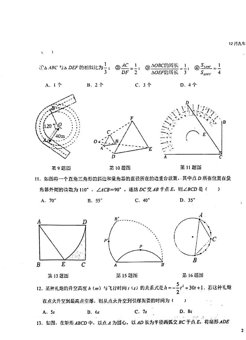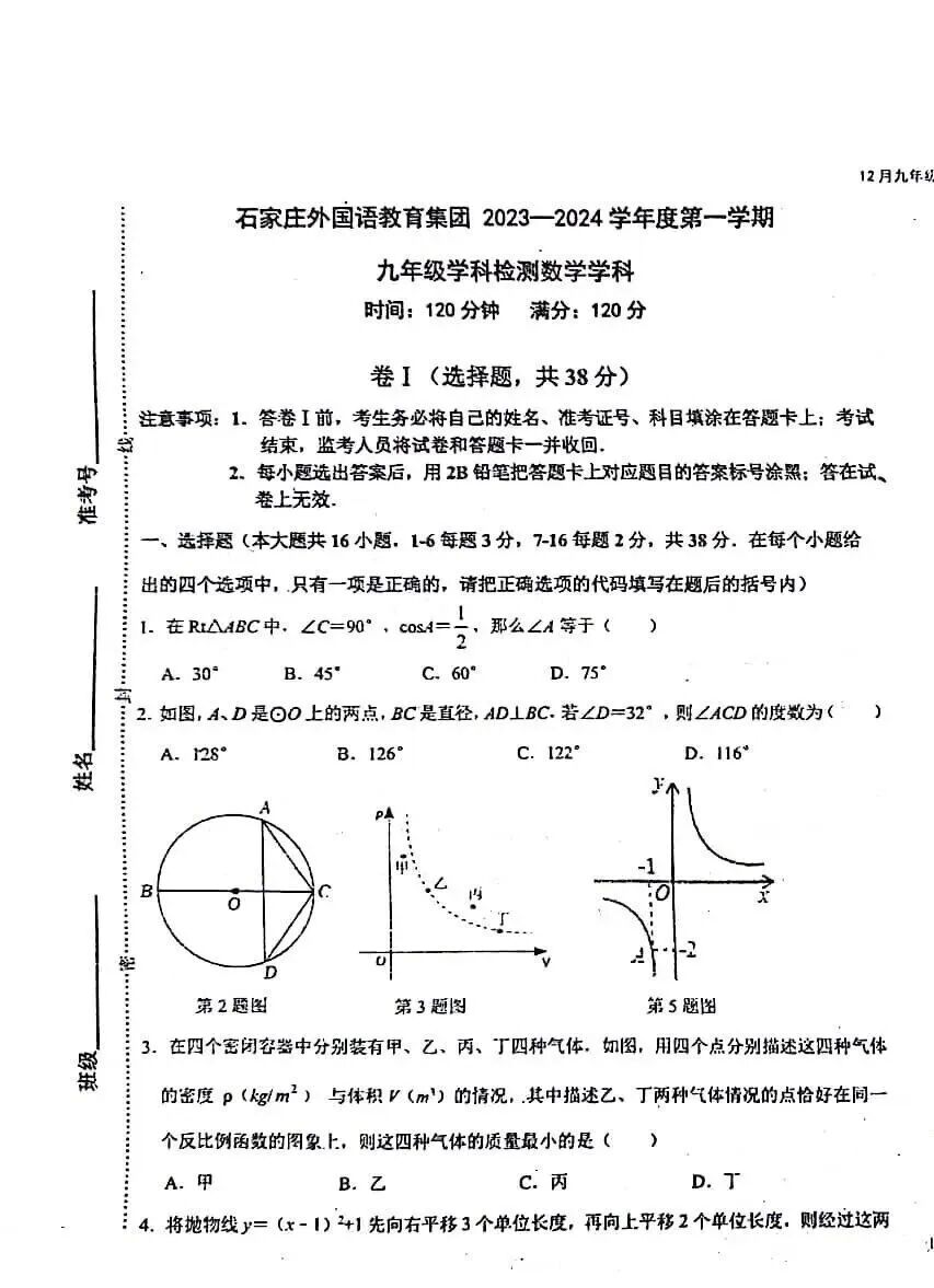 2023-2024石家庄外国语教育集团九年级数学阶段测试卷及答案(12月)
