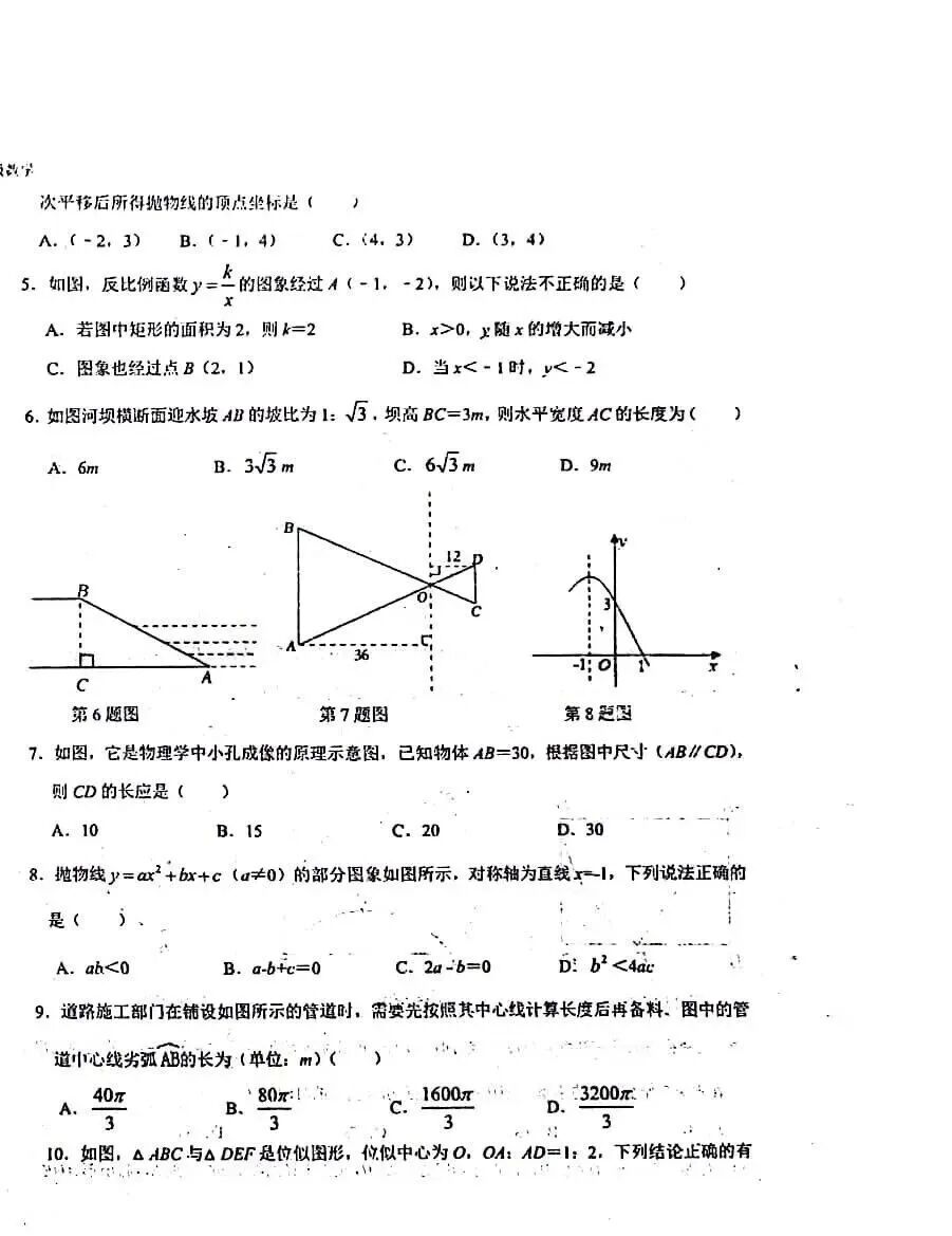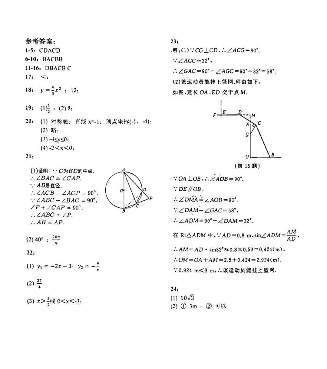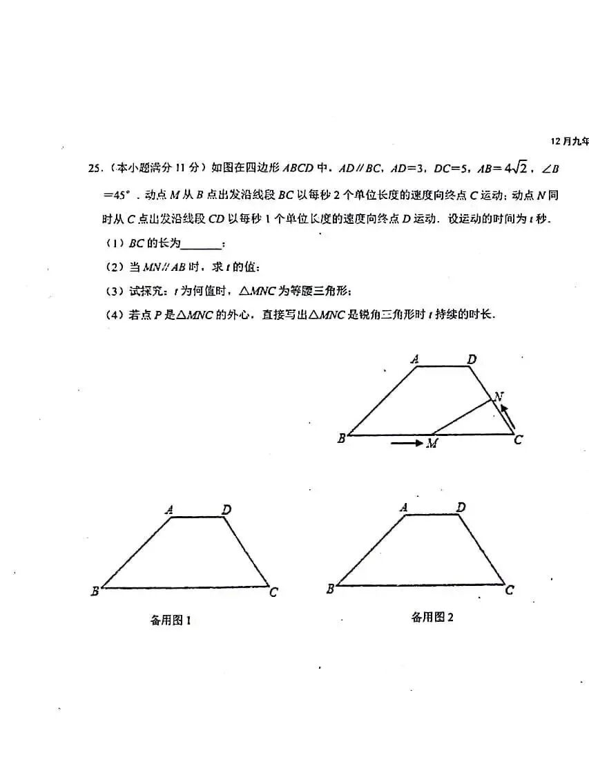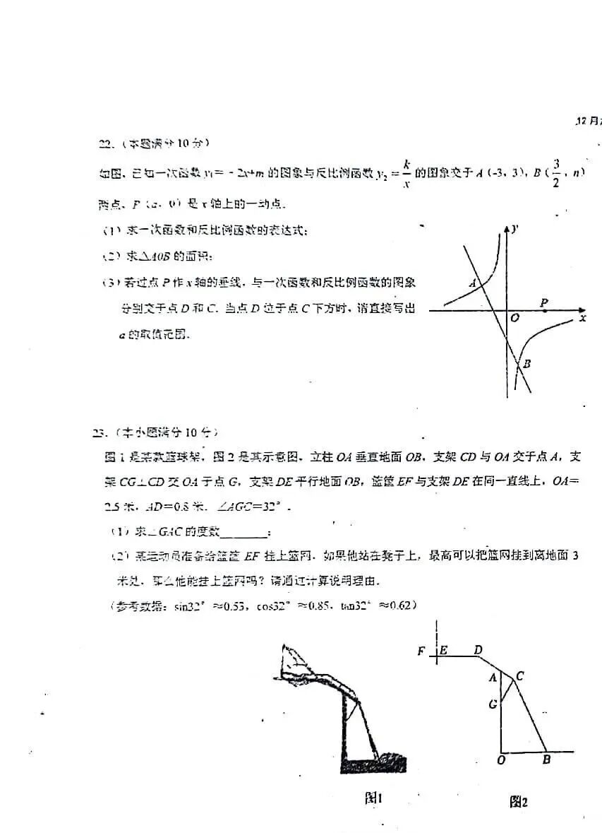 2023-2024石家庄外国语教育集团九年级数学阶段测试卷及答案(12月)