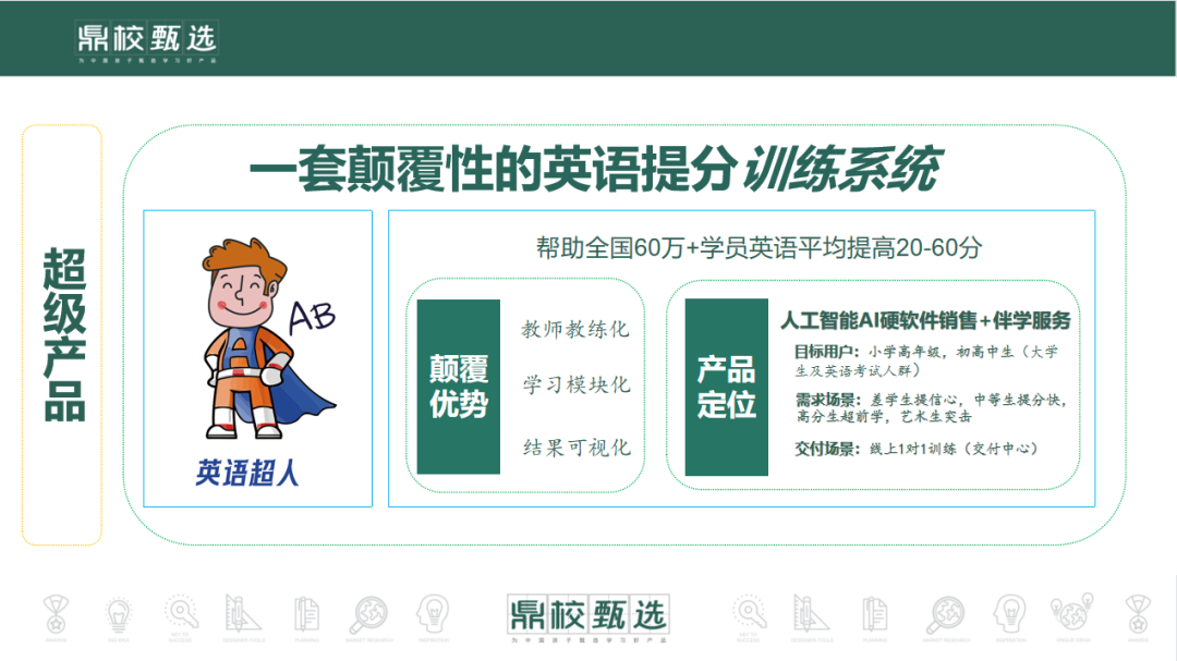 鼎校英语(又称鼎校智能英语),是安徽鼎校教育科技有限公司倾力打造的英语学习产品,依托顶尖研发背景与创新技术,为学生提供高效提分解决方案,同时面向全国开放加盟,诚邀创业者携手共赢。