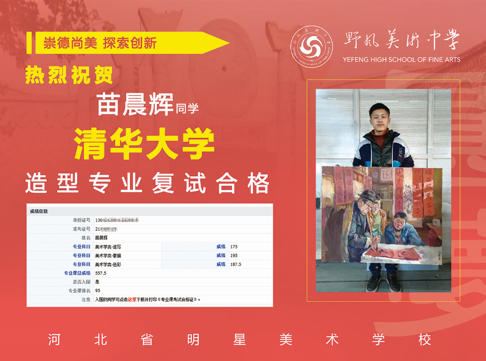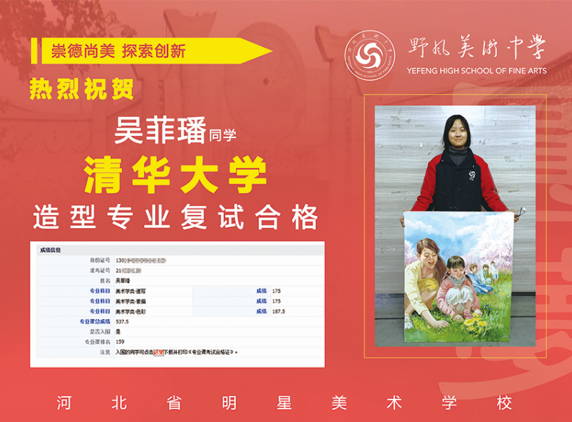 2021年野风苗晨辉、吴菲璠同学凭借过硬的美术基础,通过清华大学造型专业复试!