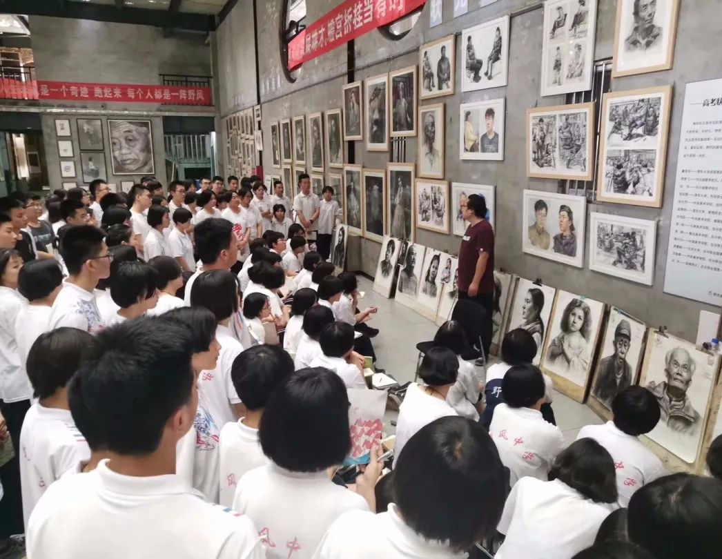 这里不仅是艺术展览馆,也是学生们的画室。学生们在这里可以看到优秀学生的作品和考入清华大学学长们的作品,给了学生们勇夺第一的动力!