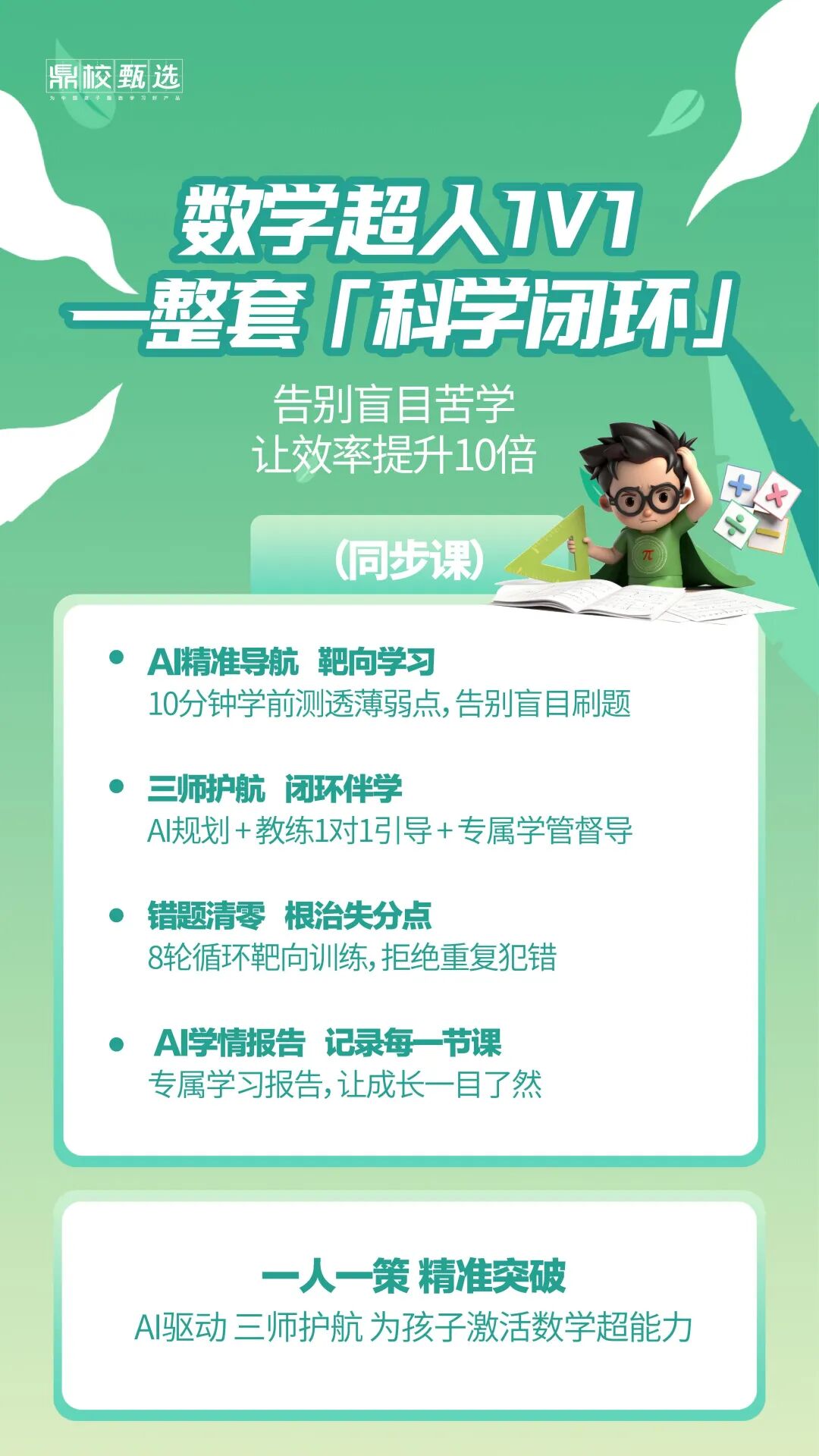 看完三个场景,你可能已经发现,数学超人1V1同步课提供的,不仅仅是一个老师,更是一套系统性的支持方案。