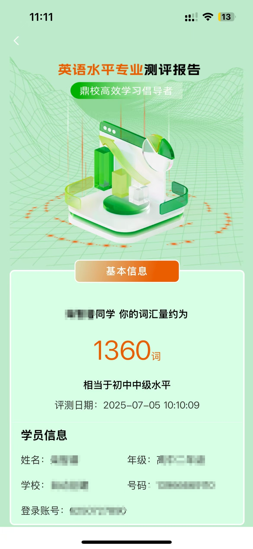 体验课结束后,我们将为孩子生成一份专属的英语提分路径报告,清晰指出优势与短板,并提供具体可行的学习建议。让家长看得见进步方向,为孩子持续提升铺就清晰路径。