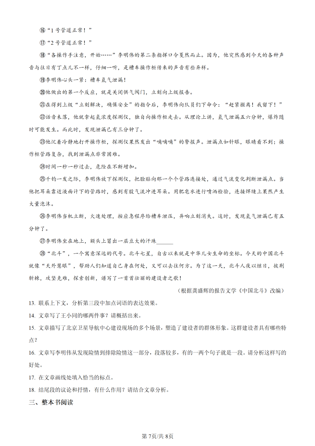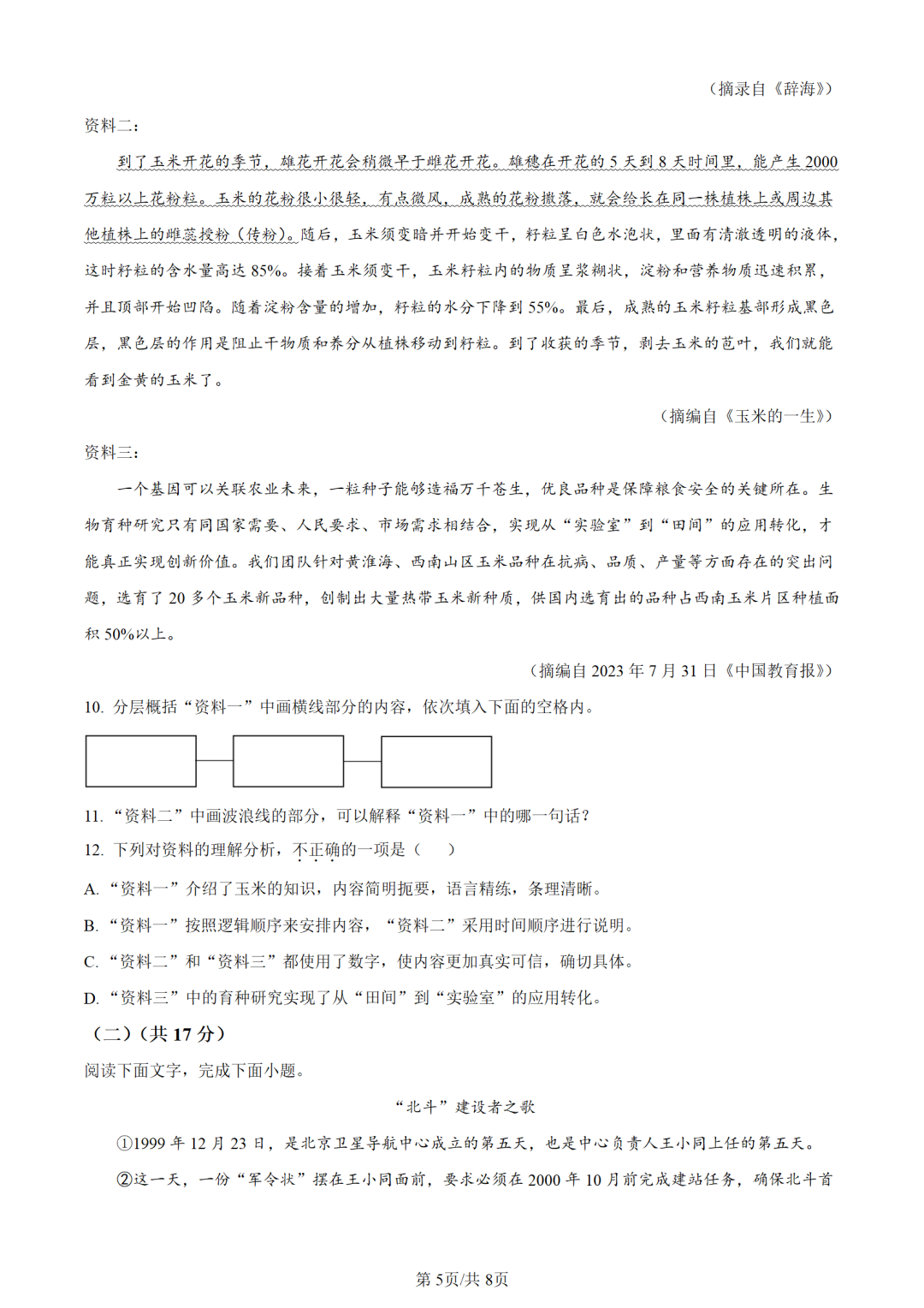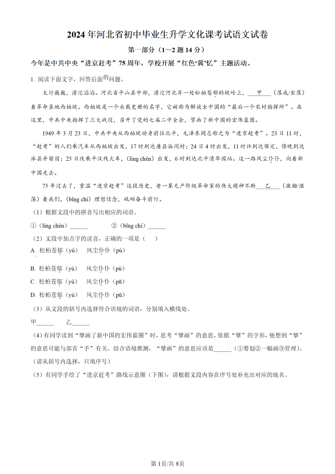 2024年河北省初中毕业生升学文化课考试语文试卷