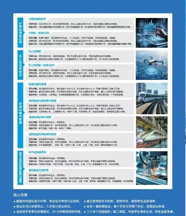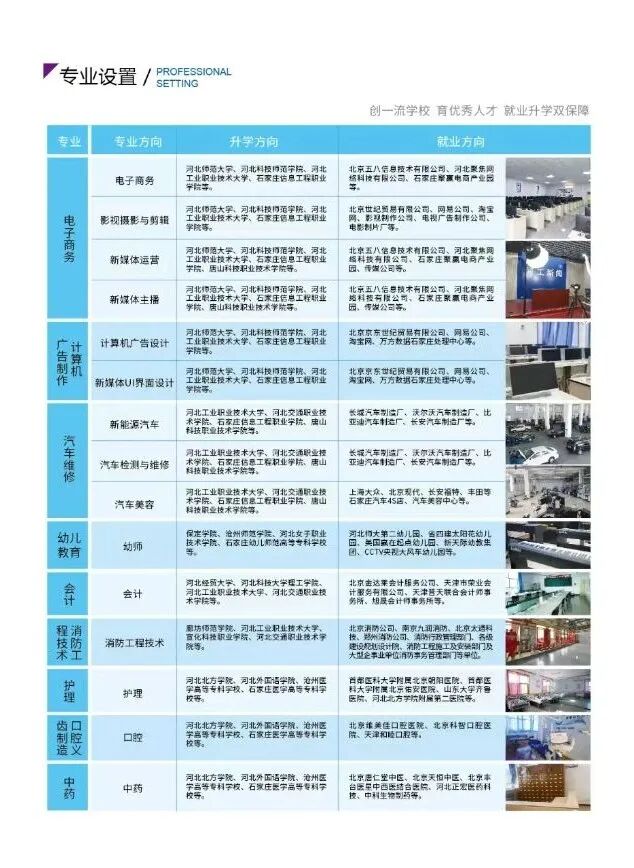 (1)升学方向:河北工业职业技术大学、河北交通职业技术学院、石家庄信息工程职业学院、唐山科技职业技术学院等。