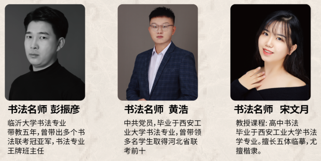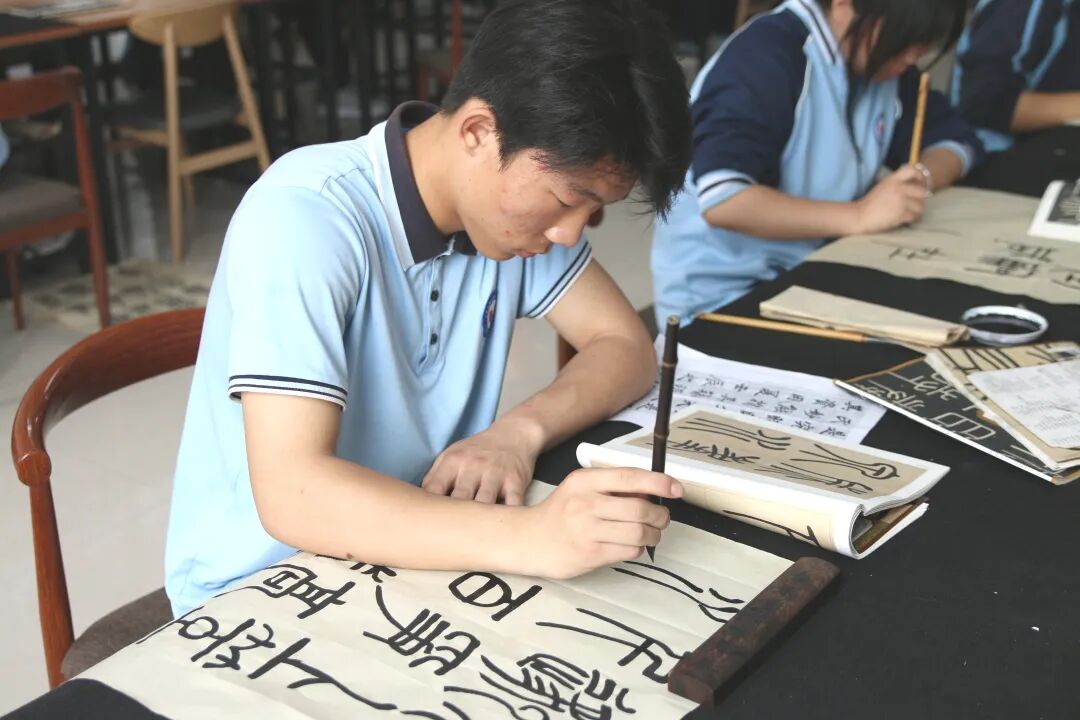 我校书法专业现开设"航母班"和"奋进号班"两大特色班级,其中"航母班"为弥古书院与新艺中学通力合作打造的本科直通车专项计划班,由周广胜先生亲自担任班主任,旨在通过新艺文化团队与书院书法专业师资团队的强强结合,为该班学生提供升学与就业的双重保障。