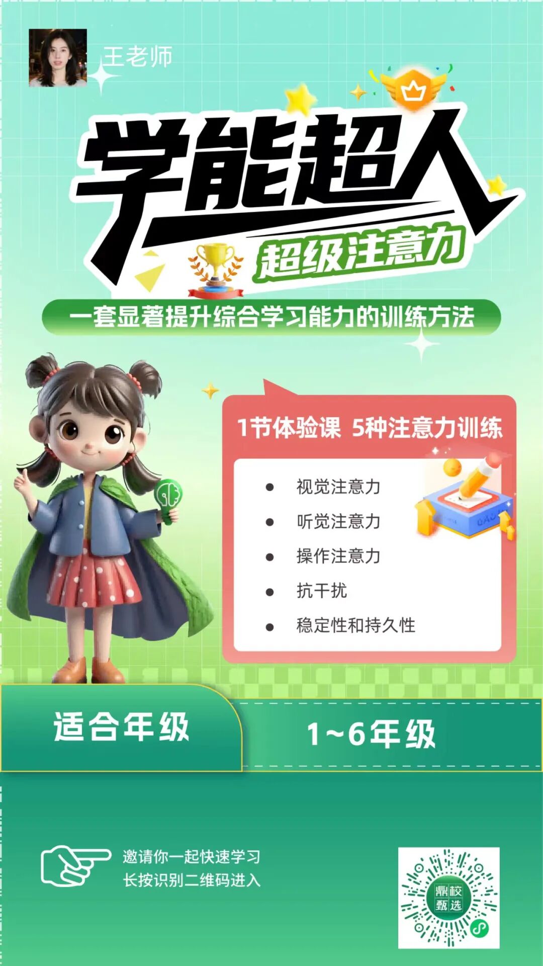 ✅ 注意力,决定课堂听课效率,杜绝走神、拖拉、粗心;