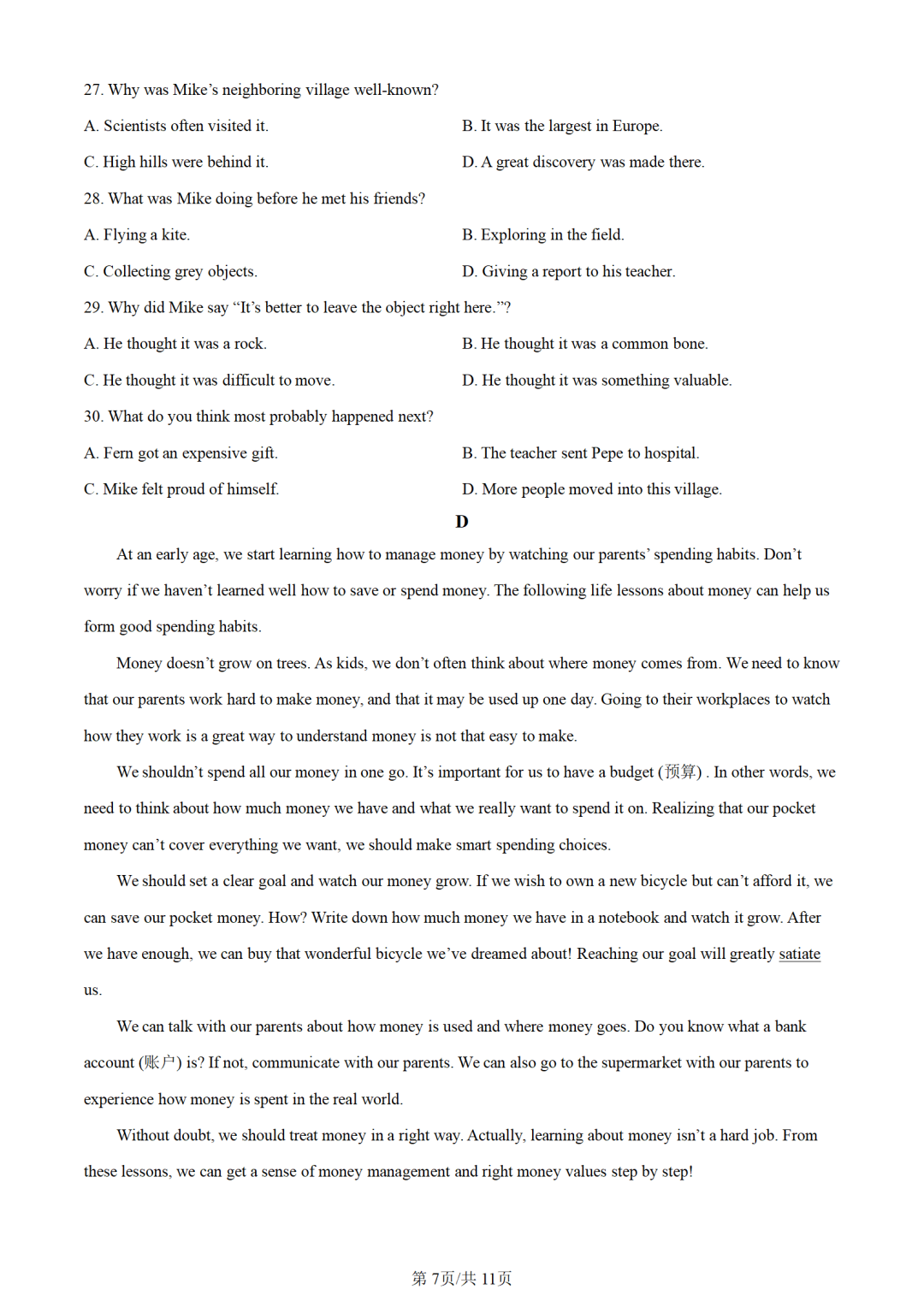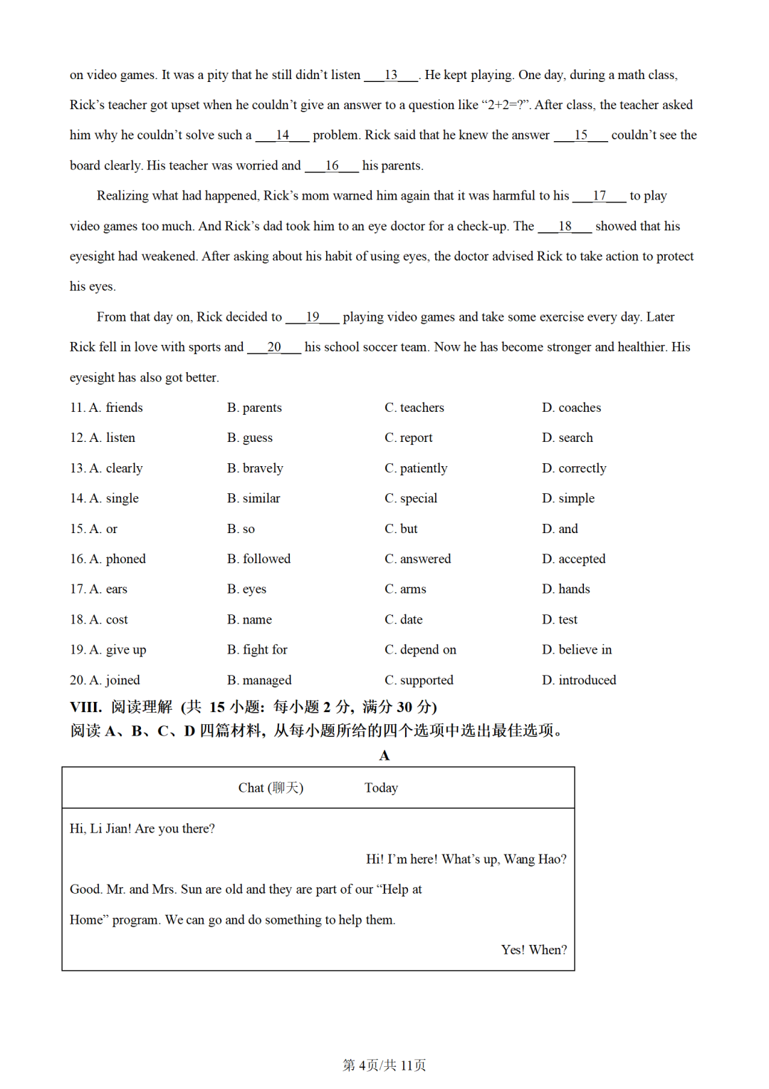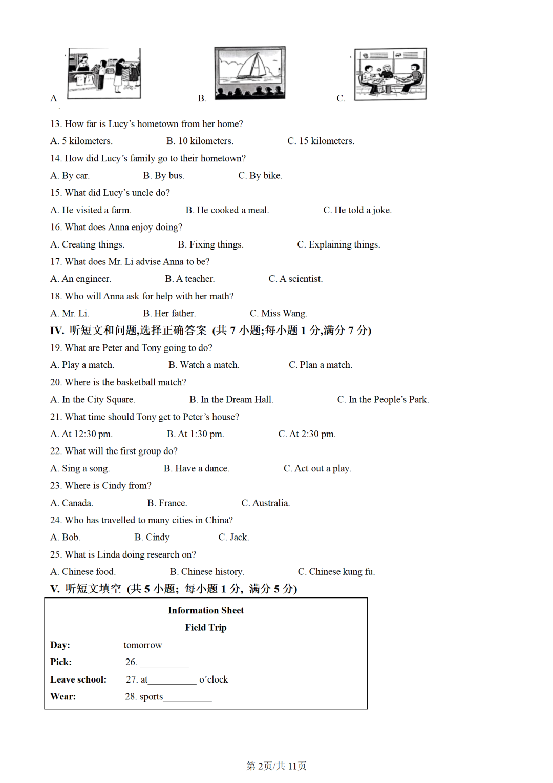 2024年河北省初中毕业生升学文化课考试英语试卷