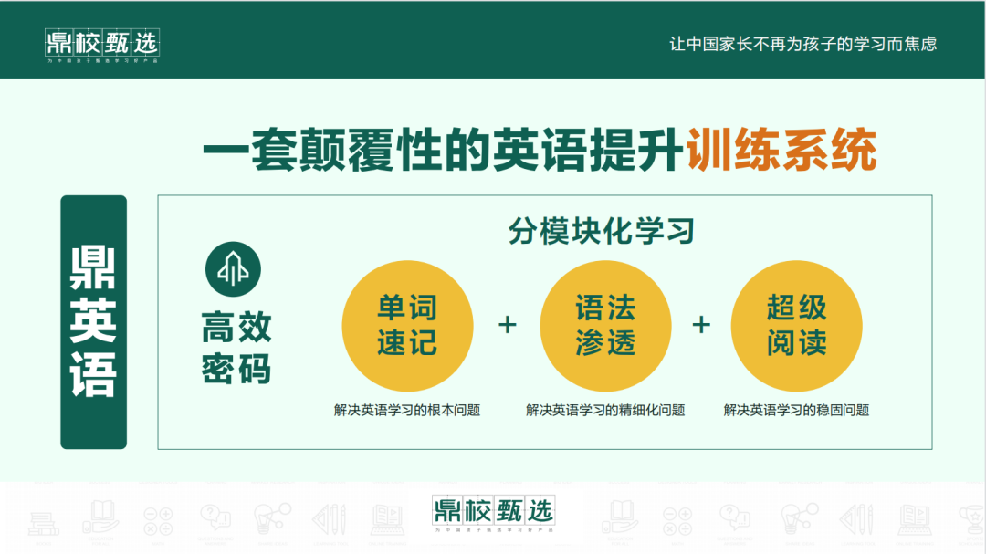 如果你的孩子也面临英语成绩提升的需求、单词记忆困难、自律性差等问题,不妨试试鼎校智能英语+极致赋能的真人学搭子学习方式。