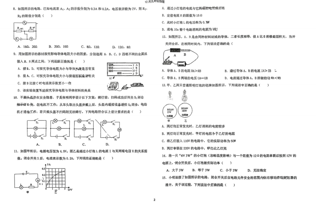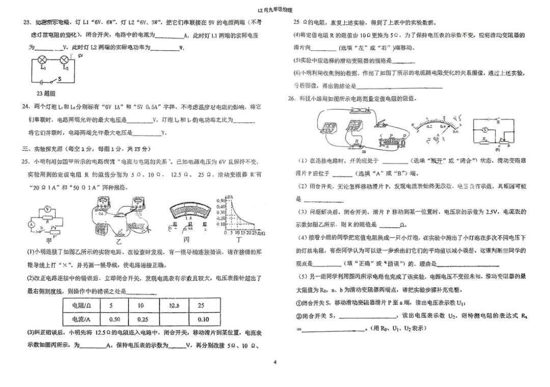 2023-2024石家庄外国语教育集团九年级物理阶段测试卷