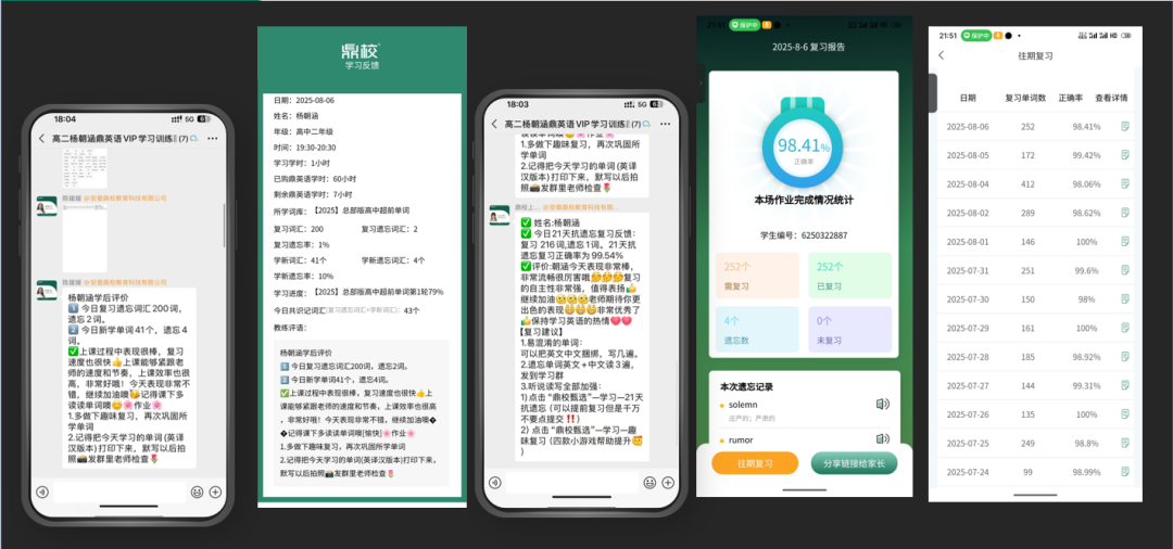 鼎校建立全流程效果可视化体系,让家长心中有数: