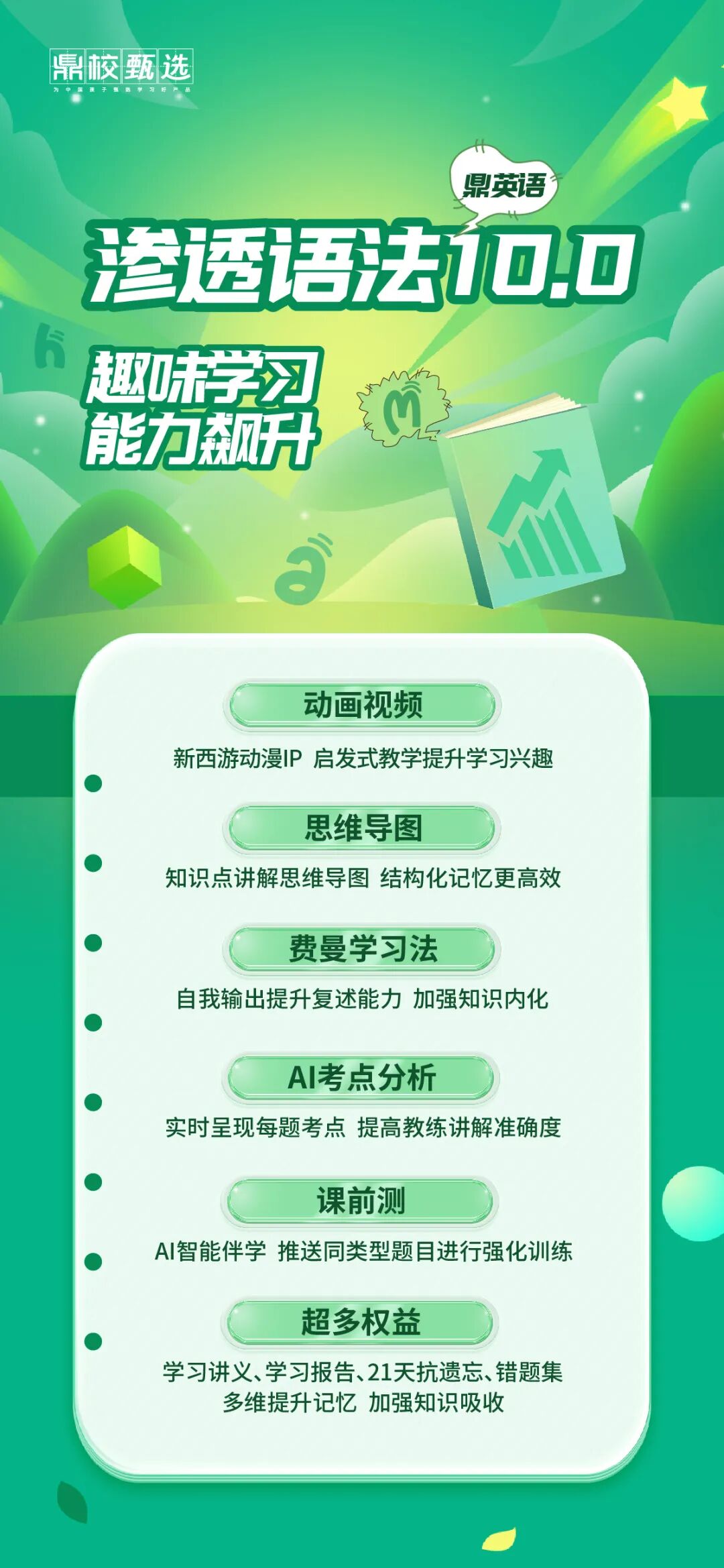 随着网友的热议,这股“国漫旋风”也刮进了鼎校甄选的鼎英语课堂! 鼎英语渗透语法10.0重磅推出【西游IP语法奇遇记】系列动漫视频课程,跟着唐僧师徒升级打怪,带你轻松攻克学习难关!
