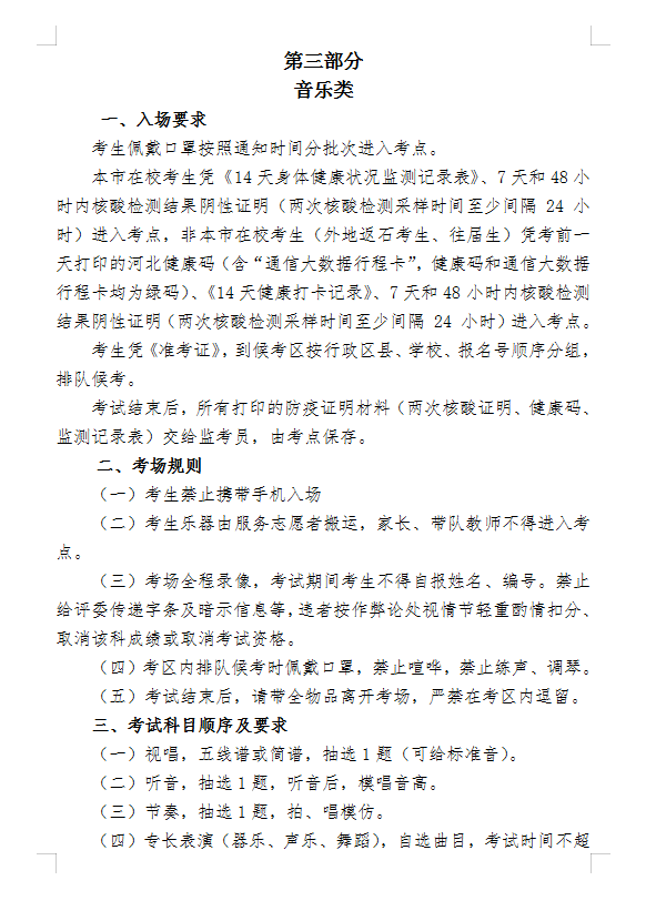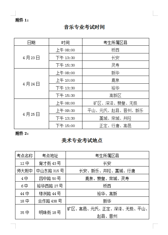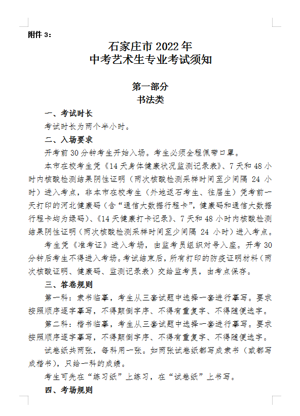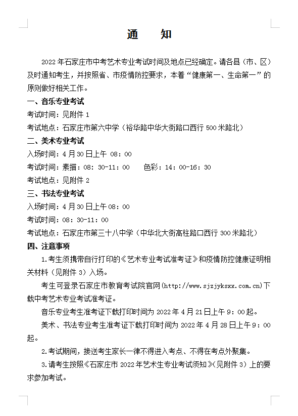 2022年石家庄市中考艺术专业考试的通知
