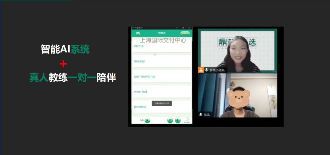 很多家长吐槽:班课是“大锅饭”,顾不上孩子的薄弱点;纯AI工具太冰冷,孩子遇到问题没人管。鼎校英语直击痛点,让AI做“精准分析师”,让真人教练做“温暖陪伴者”,二者强强联合: