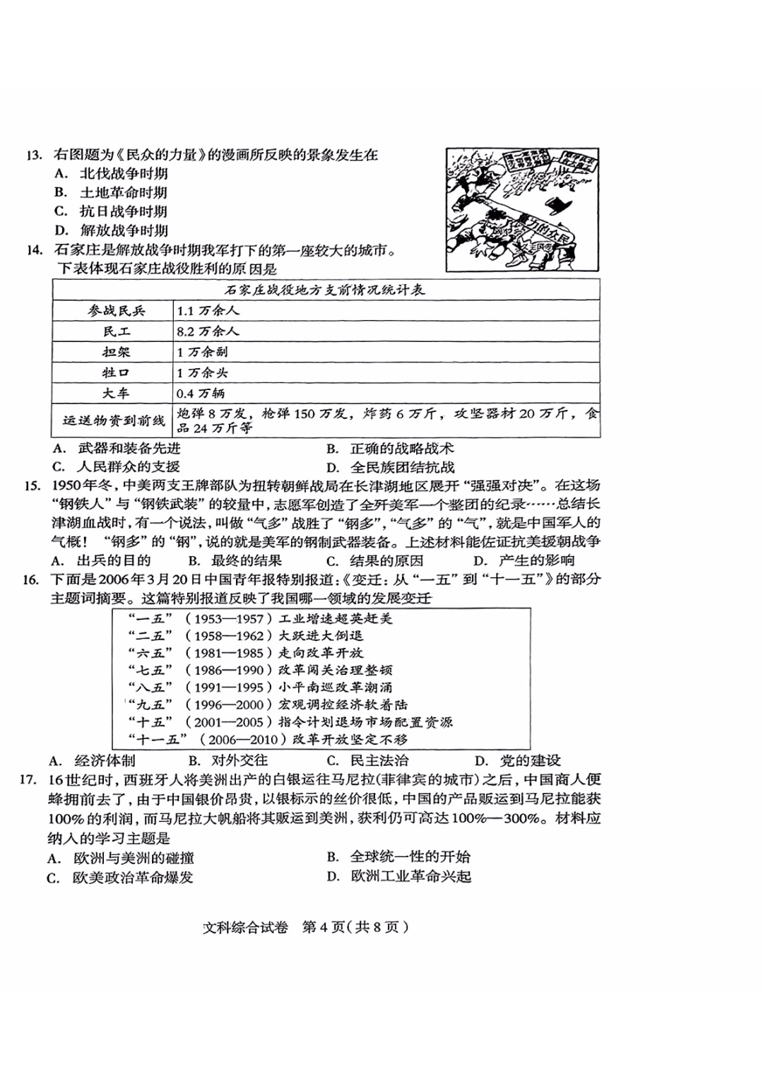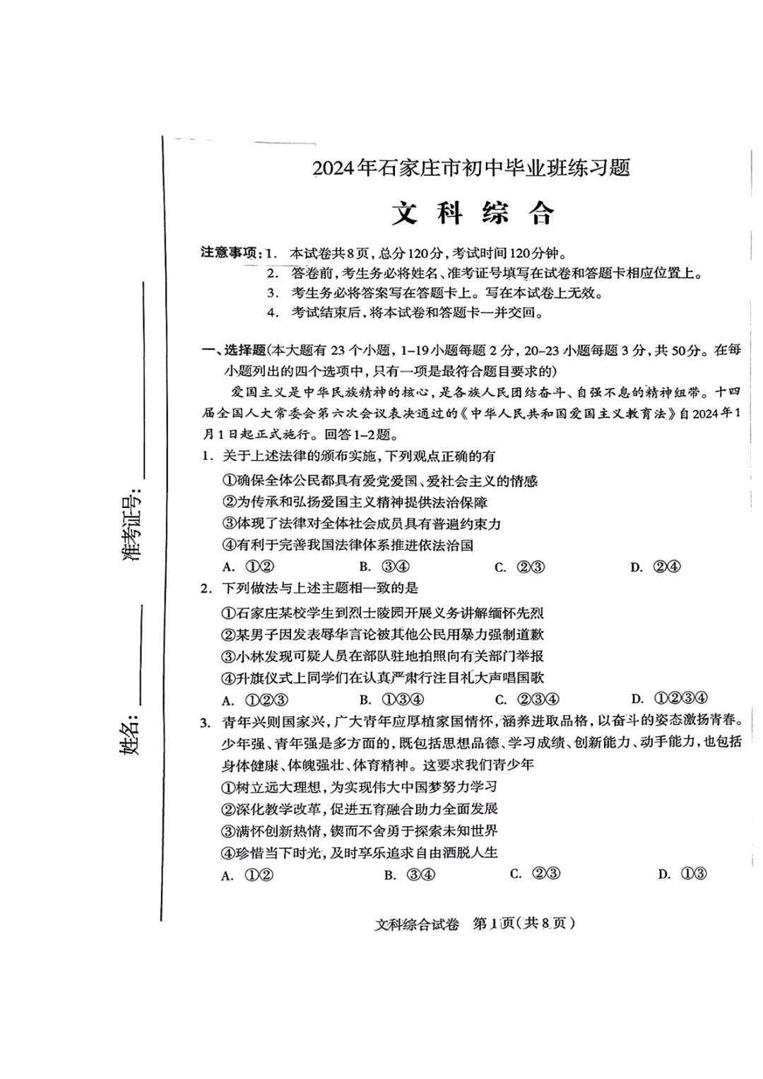 2024石家庄一模(文综)试卷