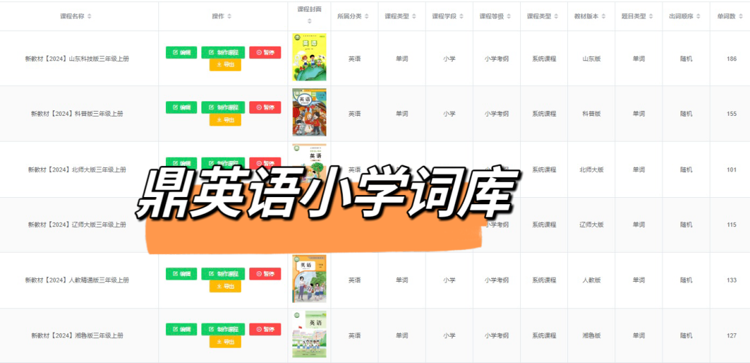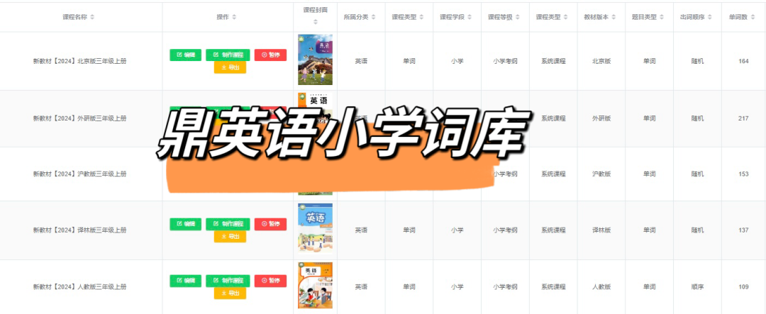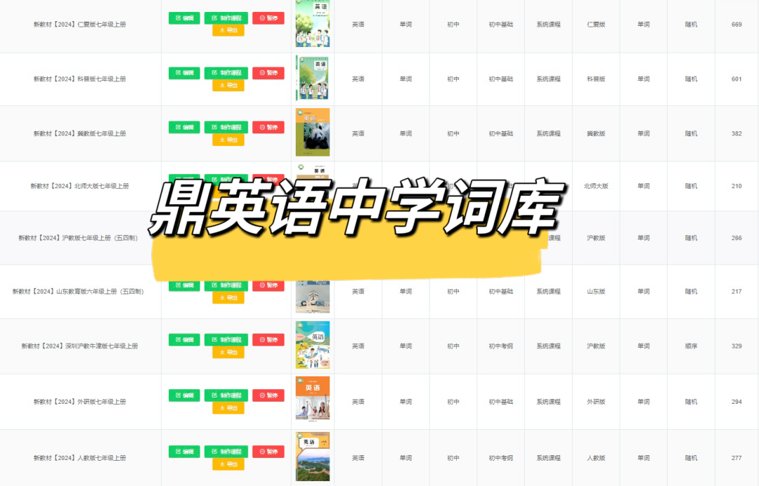 为应对中小学新版教材内容更改,鼎英语依据新教材难度和版本划分,目前后台词库已完成全面进行更新!其中【小学词库】更新16个版本,【中学词库】更新10个版本。