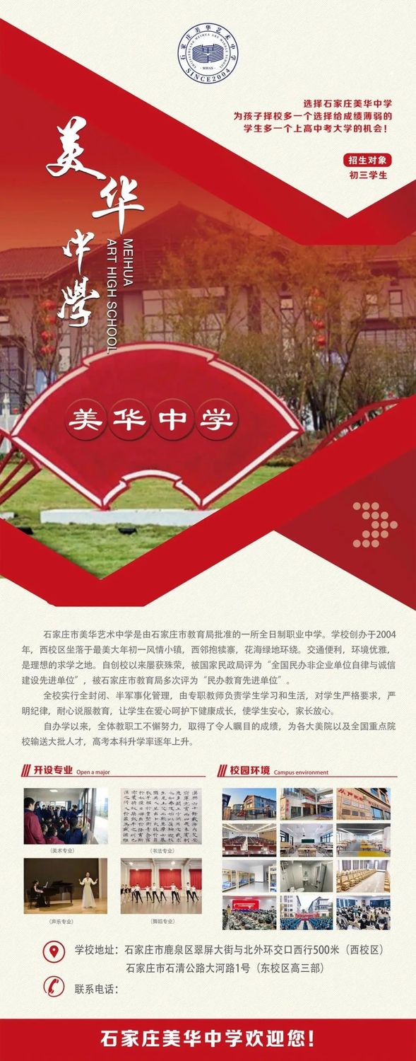 石家庄美华艺术高级职业中学音乐部集训课程以专业为主文化相辅专业文化同步学力保稳健步伐冲击名校同时给予学员小组化的专业陪练,在自习时间也时时刻刻由老师监督学习珍惜艺考前的每分每秒。