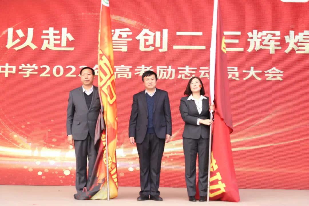 100天誓师大会 孙校长为两位负责副校长授战旗▲