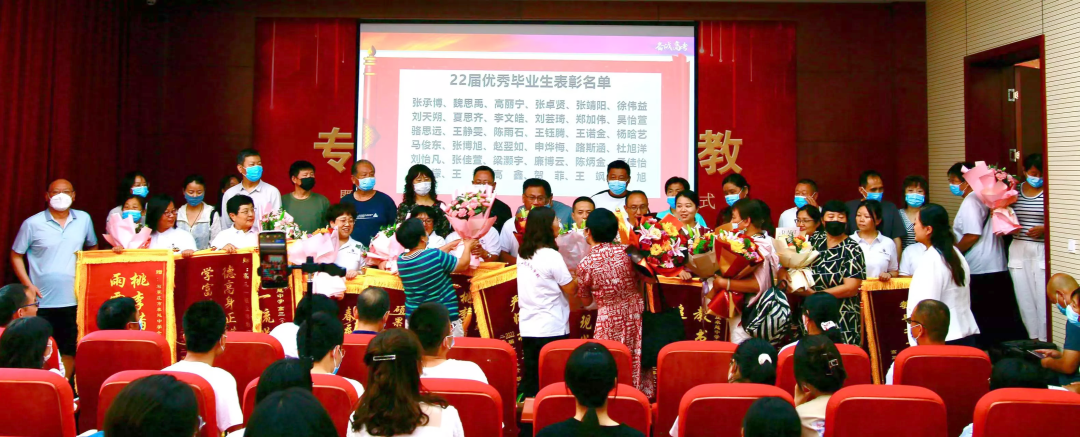 高考后家长为教师送上鲜花与锦旗表达谢意▲