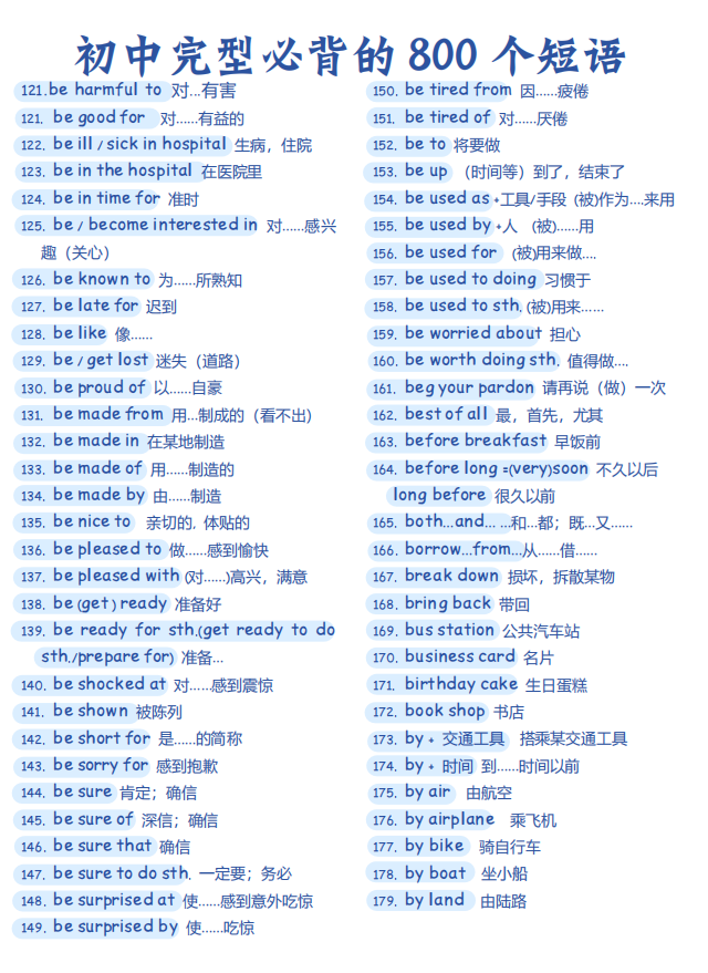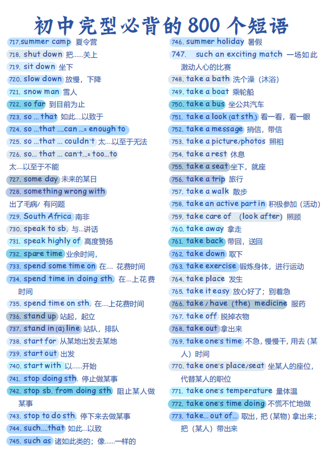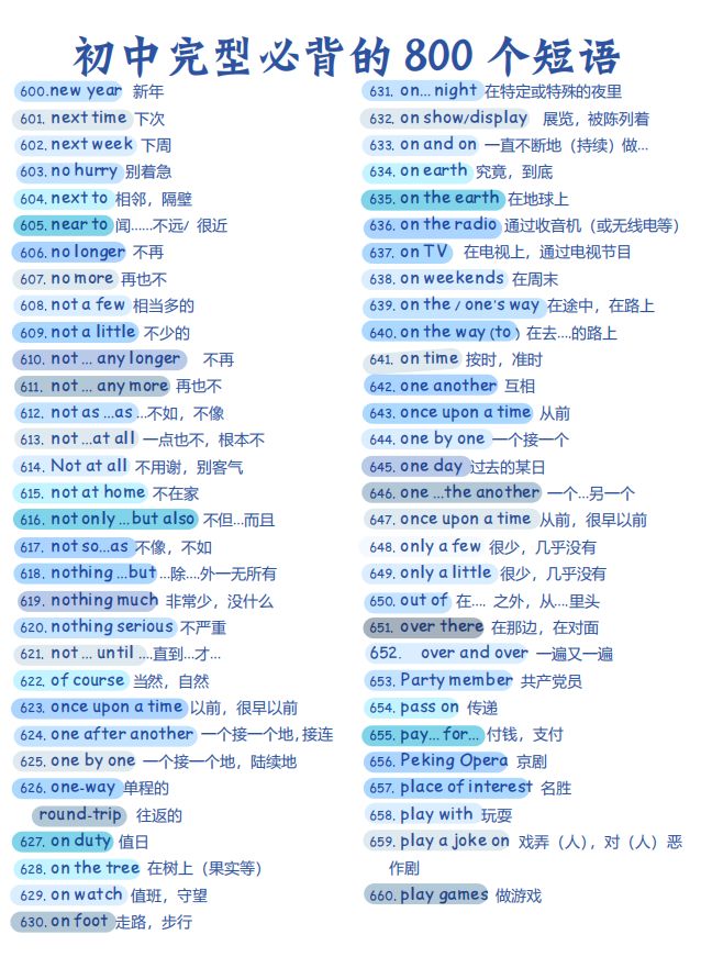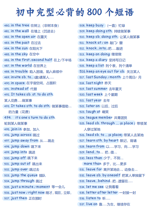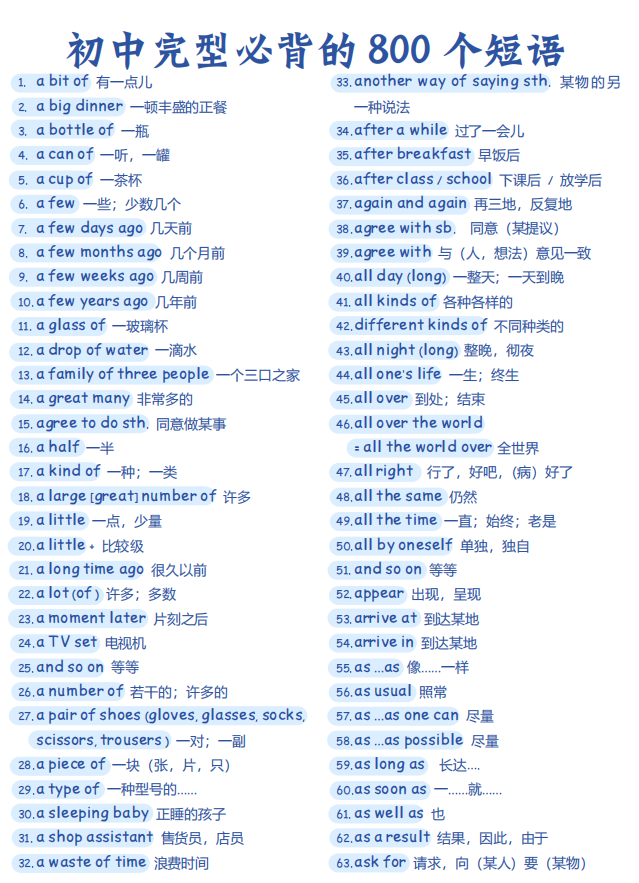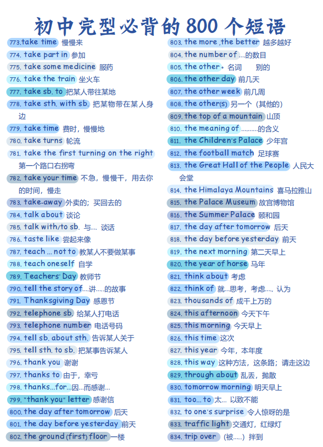 初中英语完型必背的 800个短语【可打印】